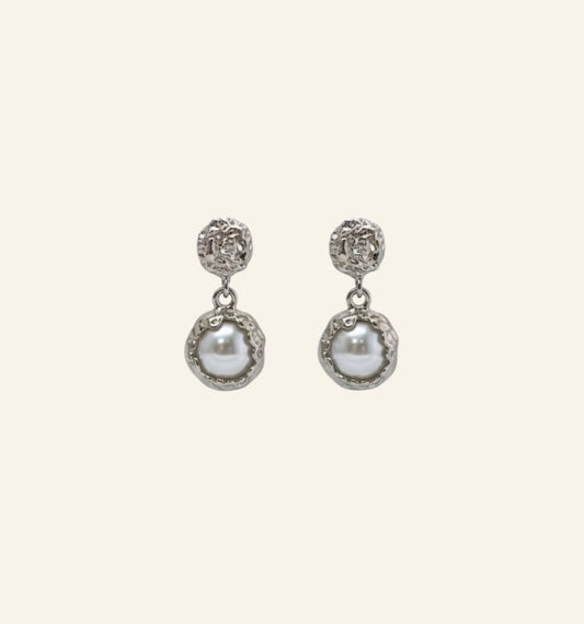 Aretes colgantes silver con perlas rodinado oro Golffield