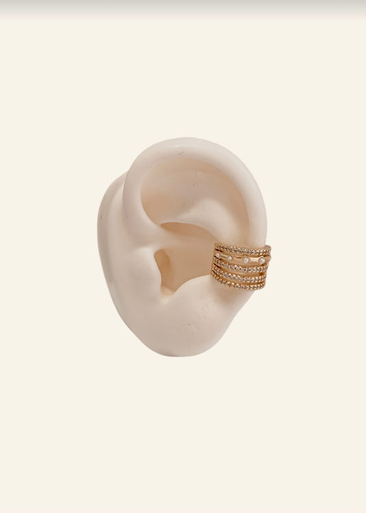 Ear Cuff rodinados con perlitas y oro Golffield