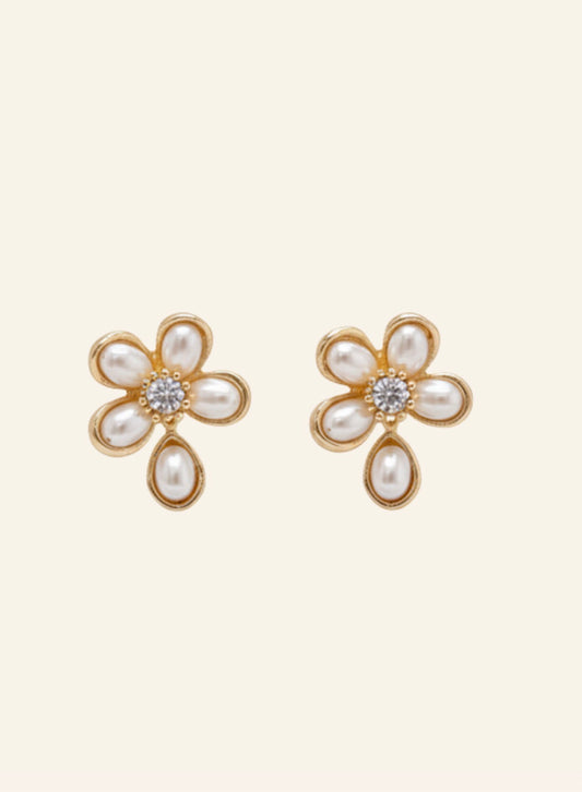Sold outAretes de Oro Flor Madre Perla