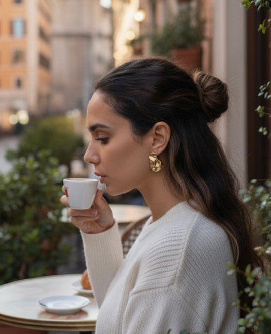 Sold outAretes de Oro Flor - Onyx