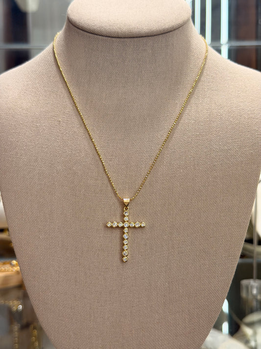 Cadena con digel de cruz con Cz redondos rodinado