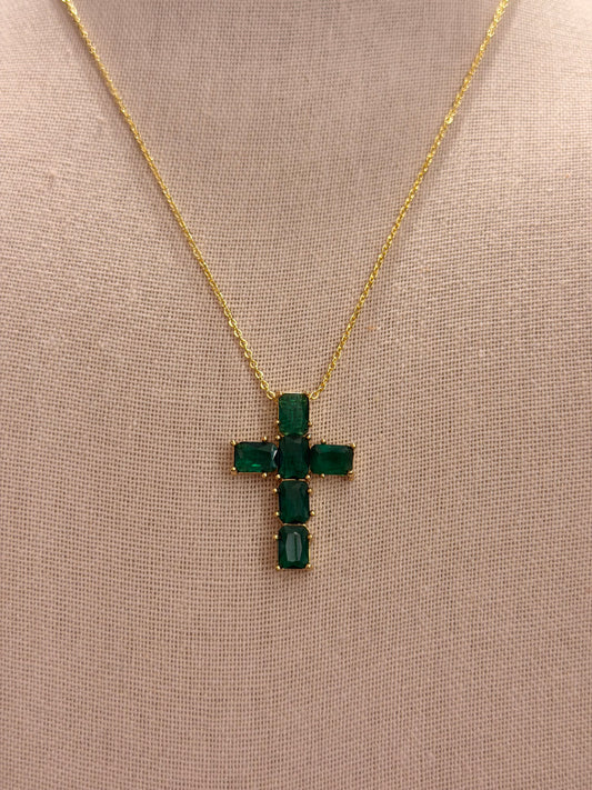 Cuelll con digel de cruz cristales green rodinado