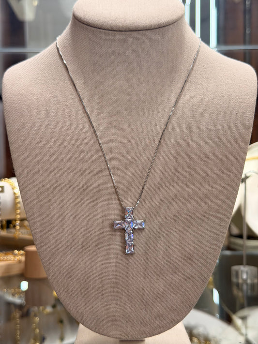Cuello de cruz con cristales transparentes silver