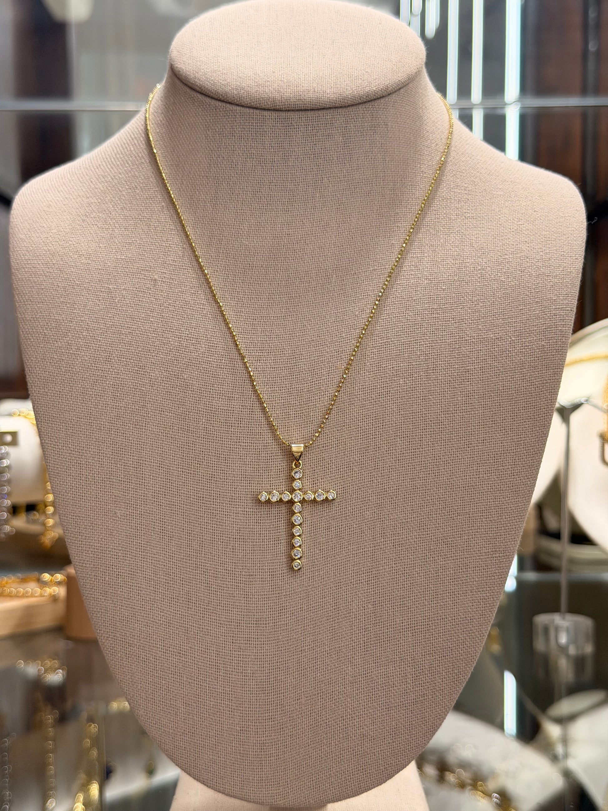 Cadena con digel de cruz con Cz redondos rodinado